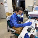鬼の衣装を着たまま電話対応をしている職員の姿も…。